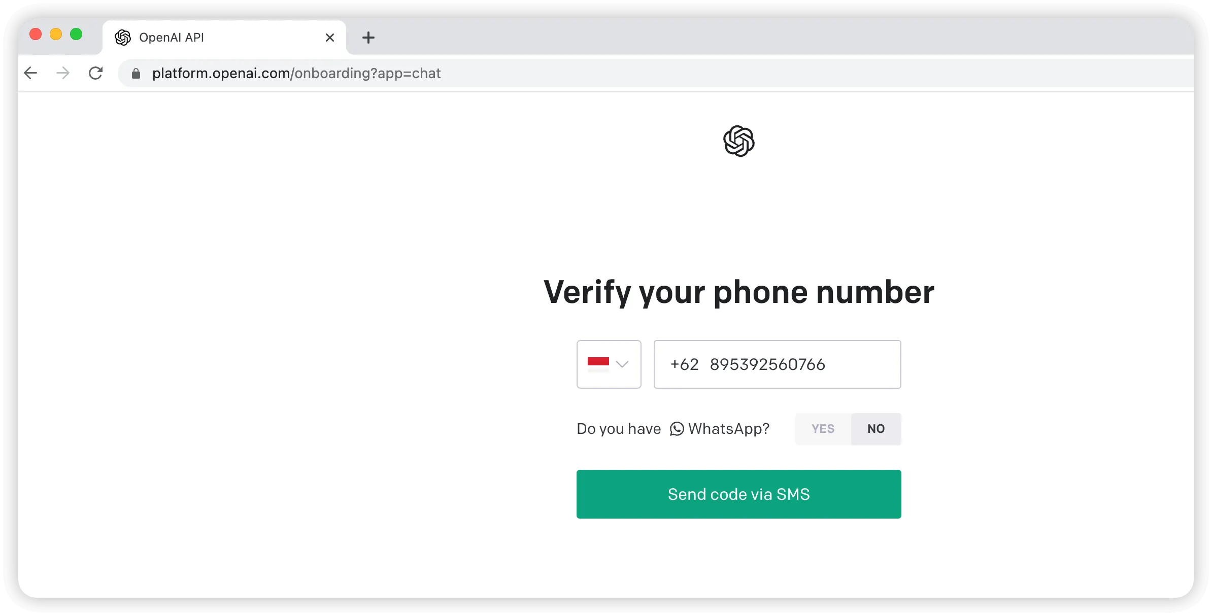 之后把这个验证码输入到 ChatGPT 页面即可完成短信验证.